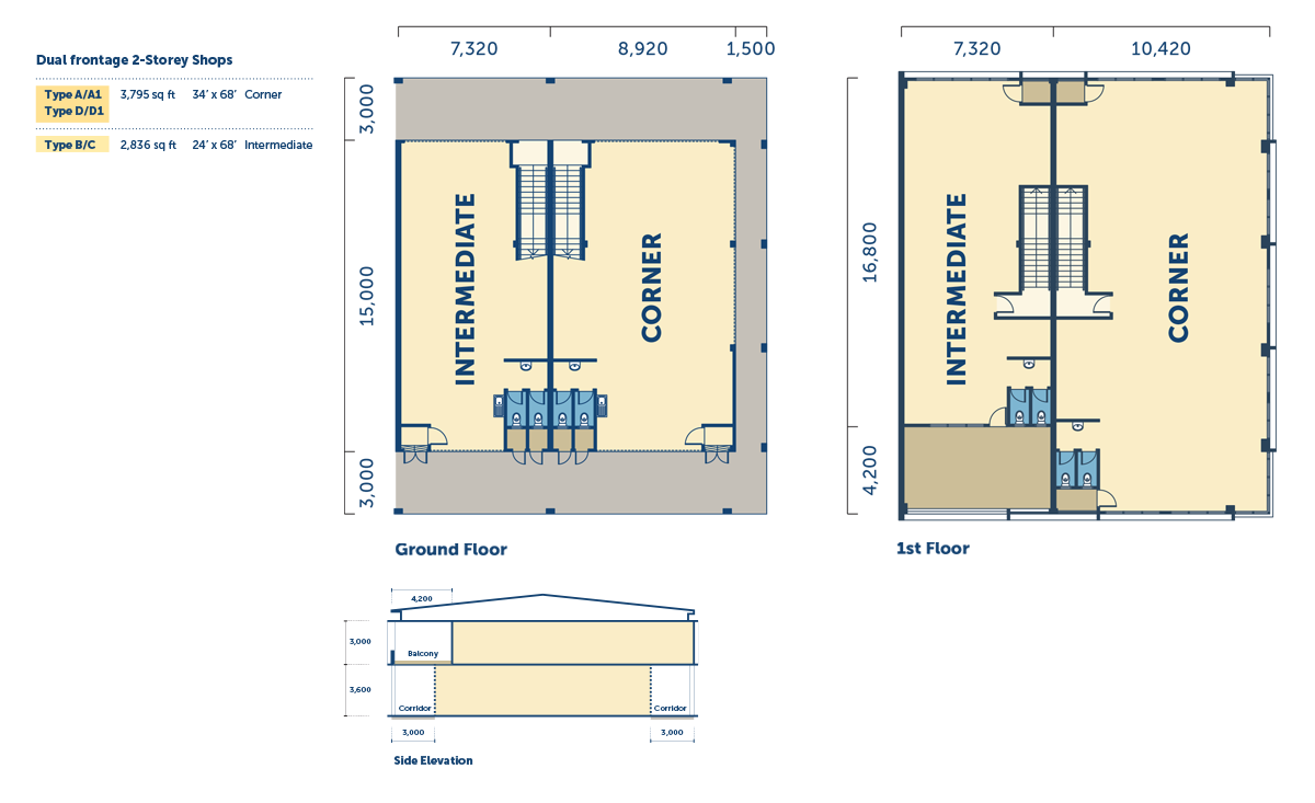 ➢ Ground-floor shops with expansive 11-foot ceiling height.