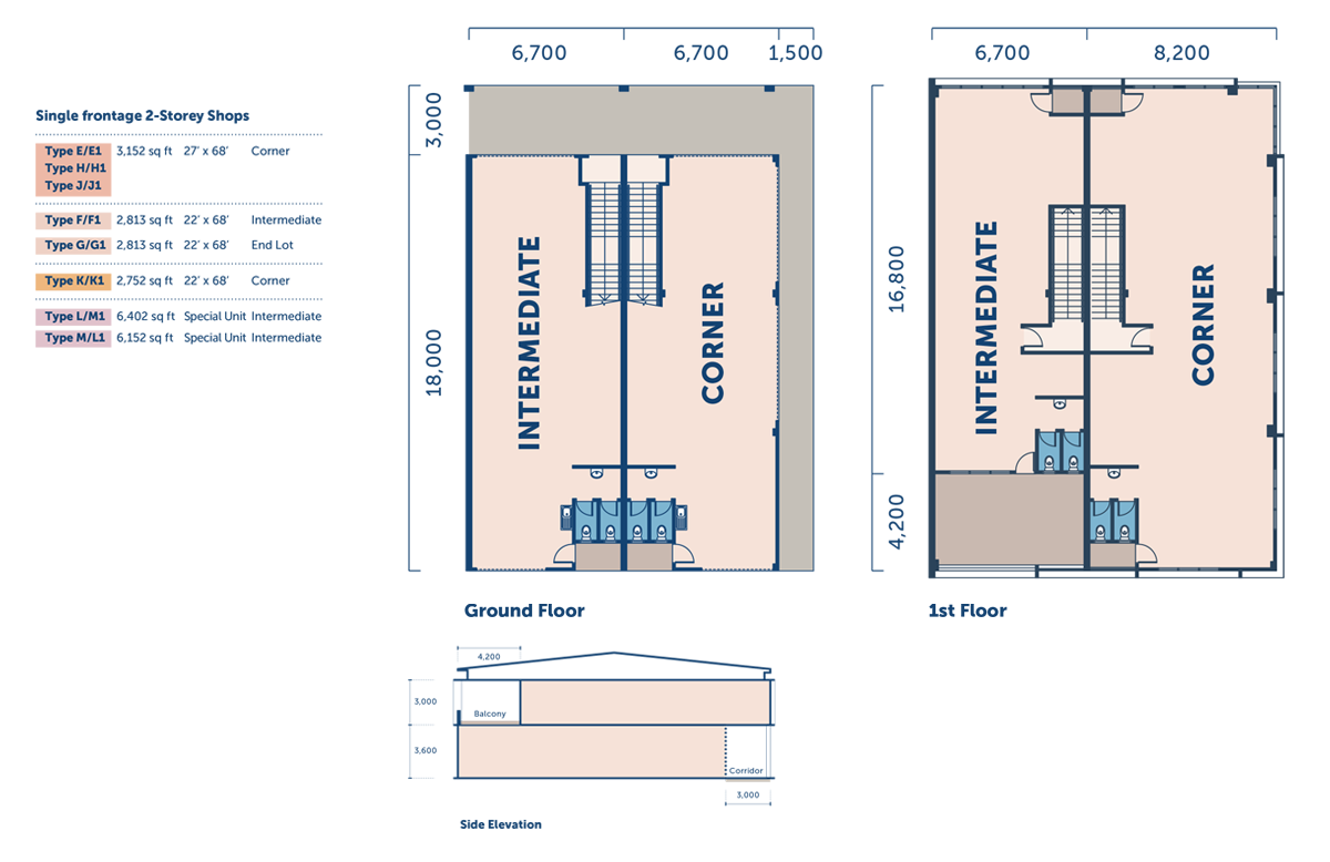 ➢ Ground-floor shops with expansive 11-foot ceiling height.